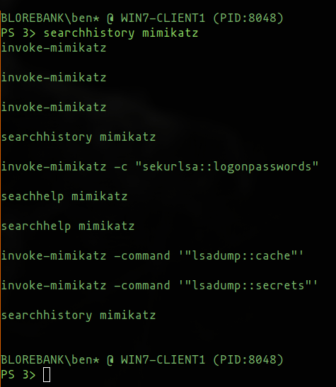 PoshC2 already allows interactive command searching similar to bash using the Ctrl-R key combination, but a much requested feature was the ability to search through the command history in a similar way to the searchhelp command, which returns a list based off a regex search.