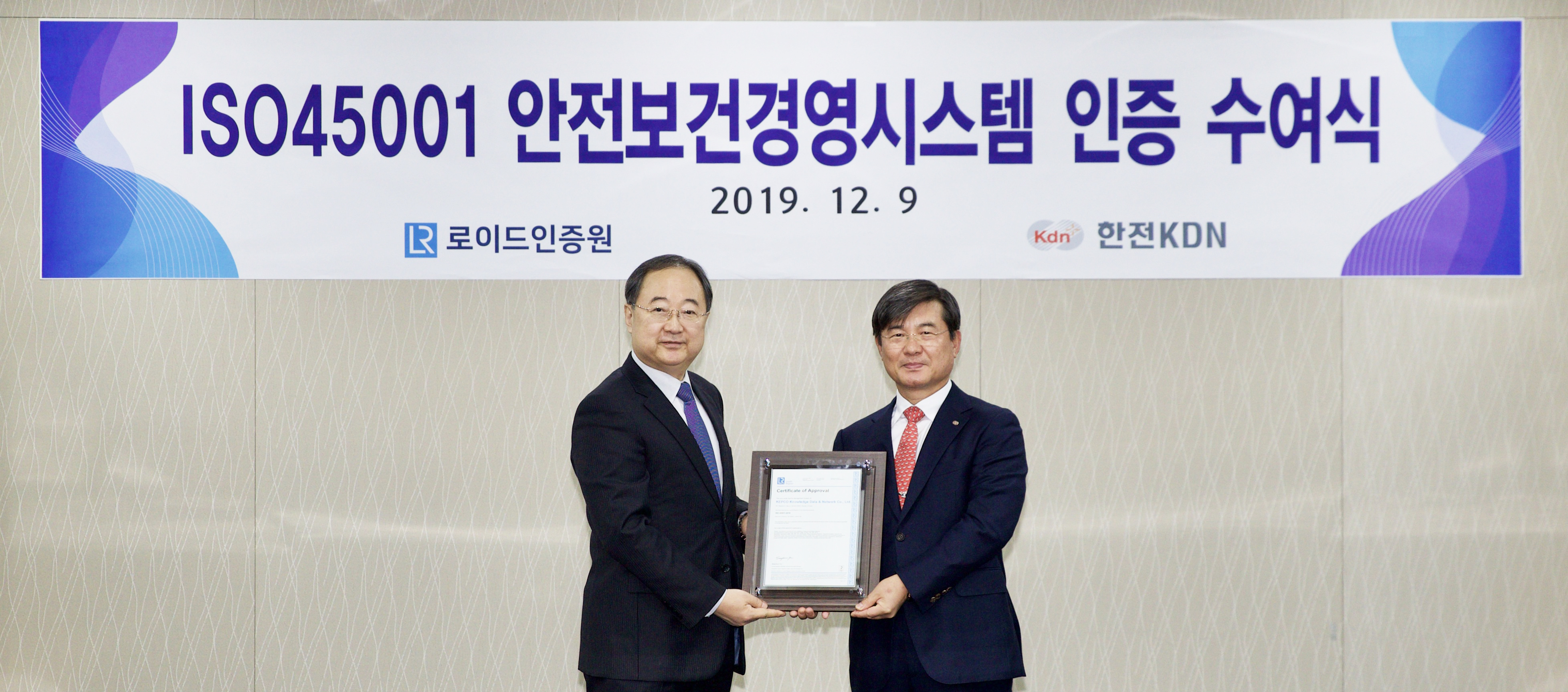 우리나라를 대표하는 에너지 ICT 전문 공기업 한전KDN이 로이드인증원으로부터 지난 12월 9일, ISO 45001 (안전보건경영시스템) 인증을 받았습니다.