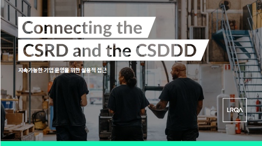LRQA는 EU 기업 지속가능성 보고 지침(CSRD)EU 기업 지속가능성 실사 지침(CSDDD)의 연계를 다룬 최신 보고서를 발표했으며, 이를 통해 지속 가능한 기업 행동을 위한 실용적인 접근법을 제시합니다.